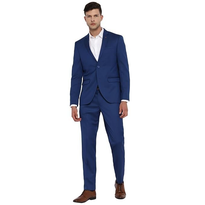 • Design: Features a classic single-breasted, two-button jacket and matching flat-front trousers. The jacket includes notch lapels, a chest pocket, and two side pockets, while the trousers are designed with belt loops and a zip fly.